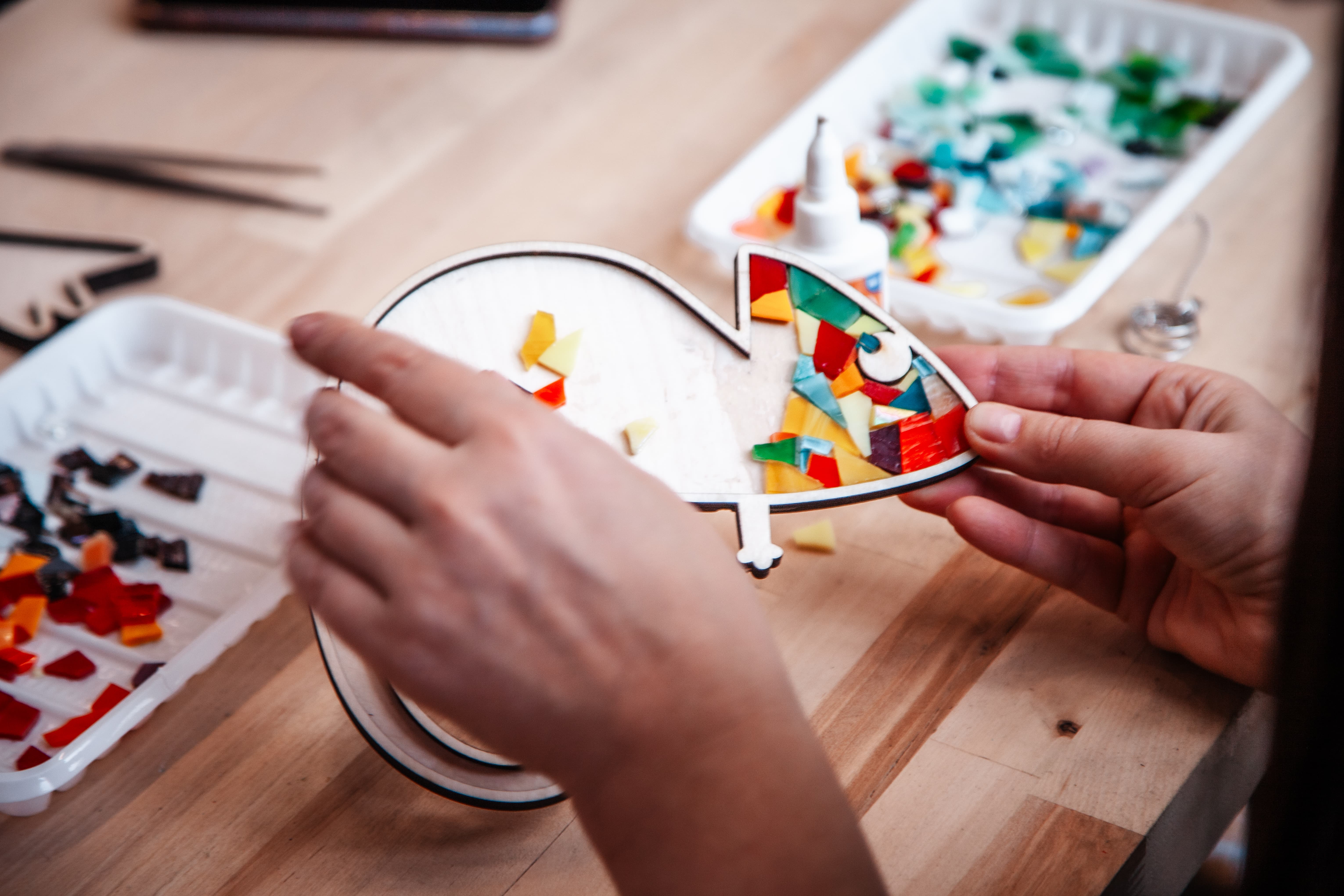 Мастер-класс прошел в уютной атмосфере лофта «Кони в яблоках». Каждая участница смогла попробовать себя в роли мозаичиста, складывая панно из ярких керамических элементов. Под руководством мастера мамы создавали весенние композиции, которые потом забрали с собой – в память о чудесном дне.